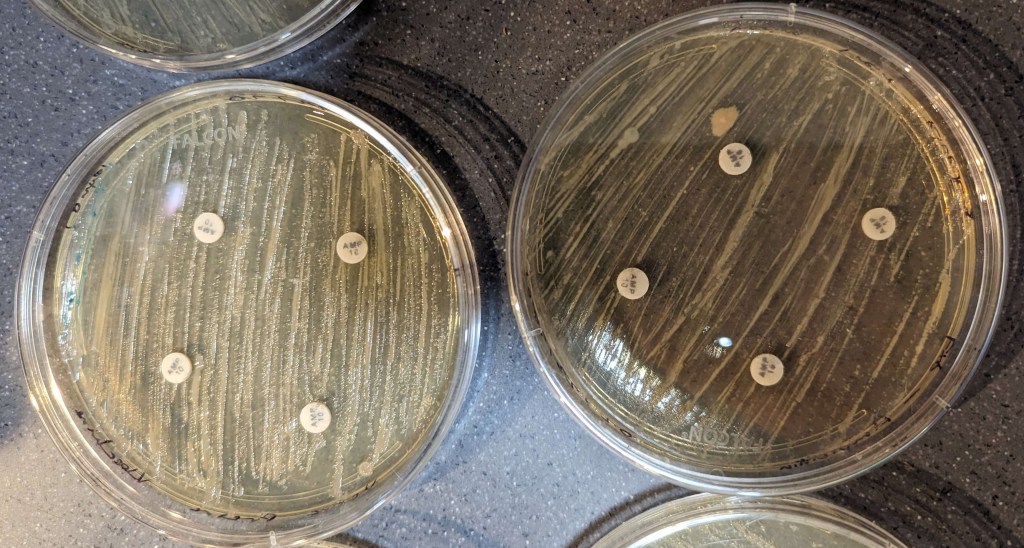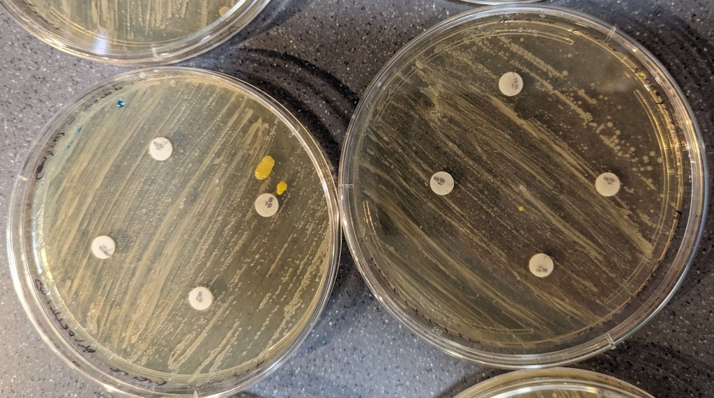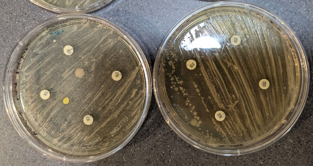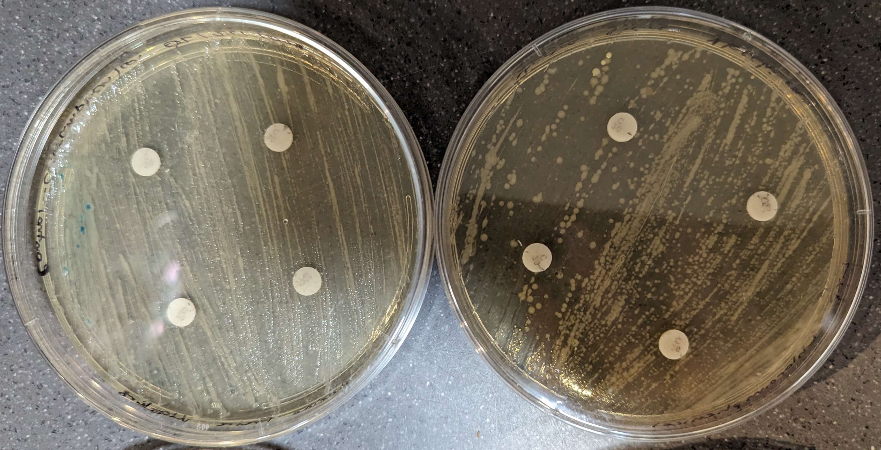 The results of the disk diffusions were minimal and not clear to the naked eye across all groups as there were no observable zones of inhibition around the discs. The disk diffusion did not appear to affect the bacteria, neither the control nor the knock-out (Figures 3-6).