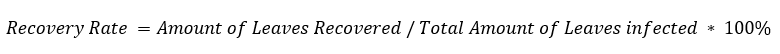 The “amount of leaves recovered” and the “total amount of leaves infected” are all collected in the same group, with same treatments.