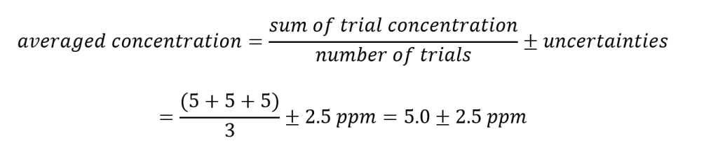 Appendix A displays all the calculated average of the three trials in which data is collected from this experiment. Sample calculation of the average procedure is shown below: